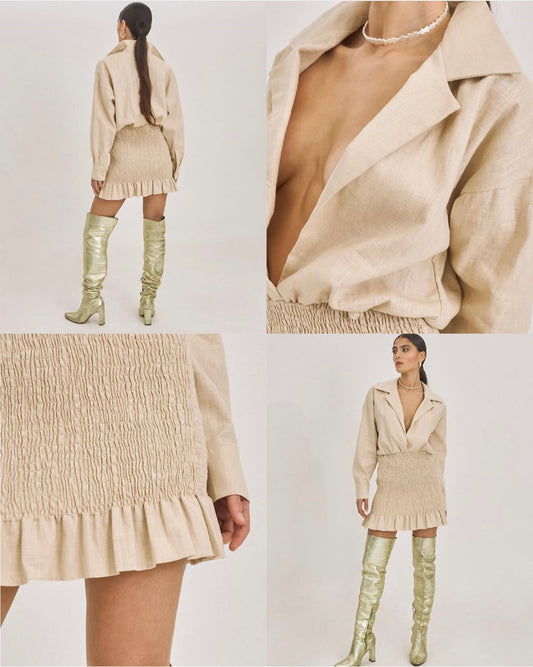 Vestido mini con mangas LINO beige