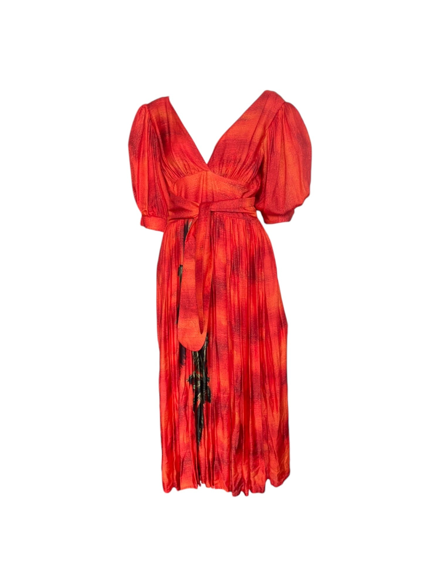 vestido midi con lazo en la cintura, manda 3/4, escote en V.