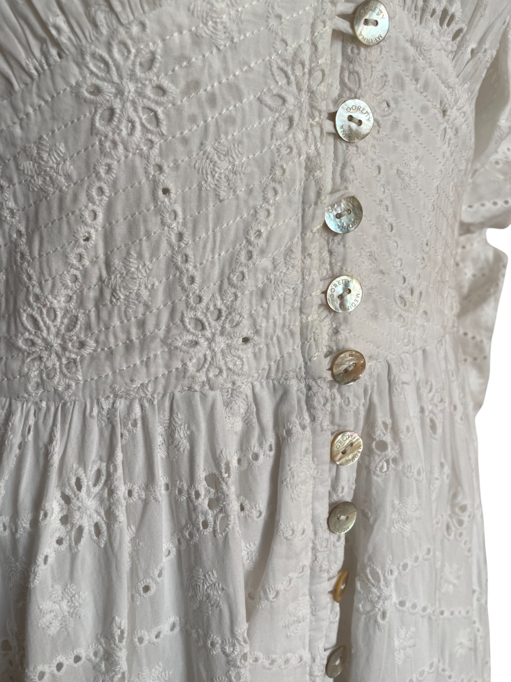 vestido maxi, manga largas, con botones en la parte del busto y abdomen