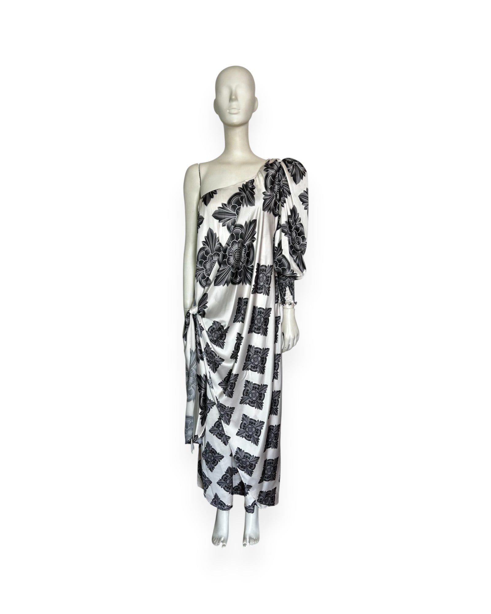 El vestido Brianna Maxi combina elegancia y comodidad con su diseño de medio hombro y un delicado nudo lateral que realza la figura. Sus mangas tipo globo con puño elástico en la muñeca ofrecen un toque romántico y permiten libertad de movimiento, ideal para cualquier ocasión especial. Este vestido te brinda un estilo sofisticado y femenino que no pasará desapercibido.