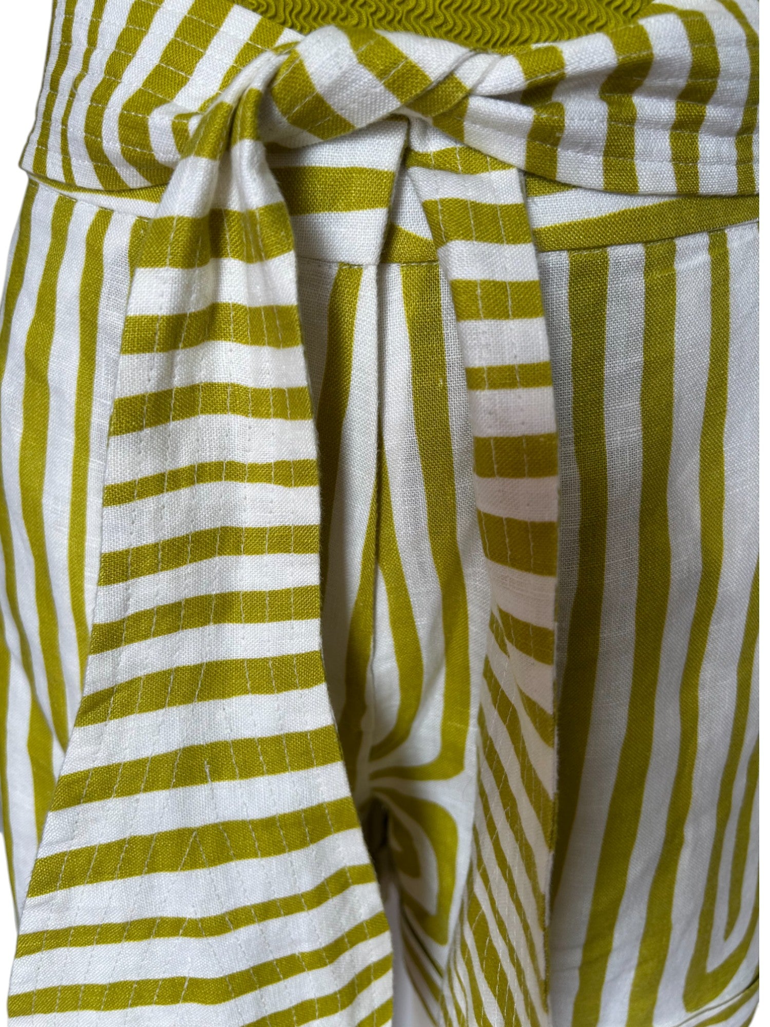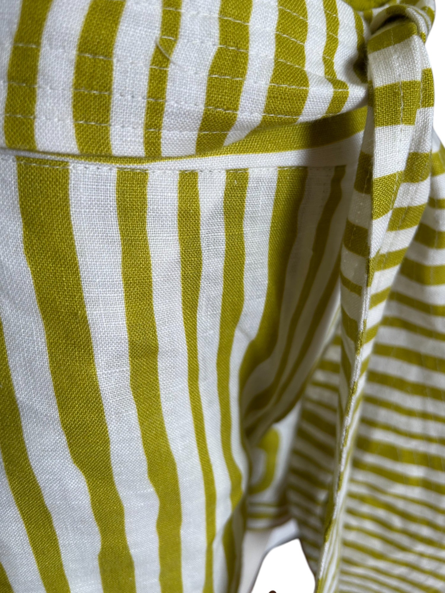 Esta prenda elegante está confeccionada en lino transpirable, ofreciendo comodidad y sofisticación. Cuenta con un cinturón ajustable que garantiza un calce perfecto, combinando funcionalidad con un diseño moderno. Perfecta para quienes buscan estilo y confort durante todo el día.
