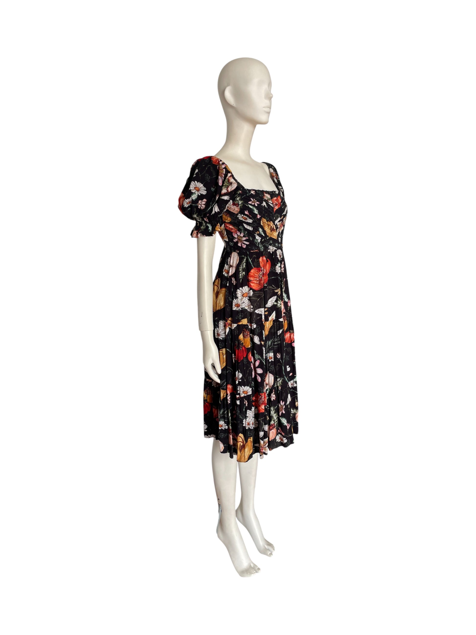 Este vestido midi con print floral es perfecto para esta temporada. Sus detalles en el busto realzan la figura, mientras que las mangas globo cortas aportan un toque moderno y elegante. Ideal para combinar comodidad y estilo, es una opción versátil para cualquier ocasión otoñal.