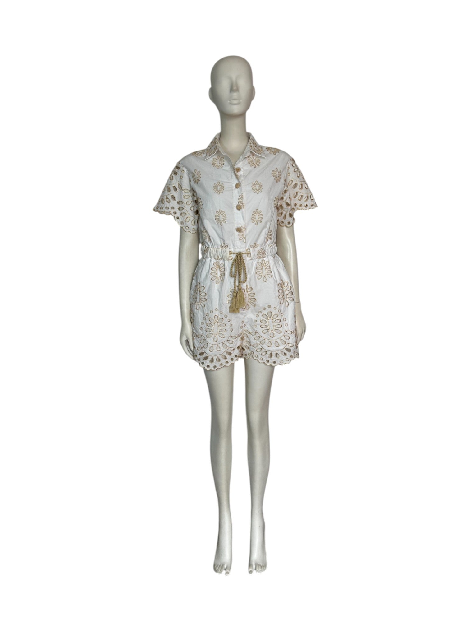 Este jumpsuit corto está confeccionado con tela de alta calidad y detalles hechos a mano que resaltan su exclusividad y cuidado artesanal. Su diseño combina comodidad y estilo, ideal para quienes buscan una prenda versátil y sofisticada que aporte un toque único a cualquier ocasión.