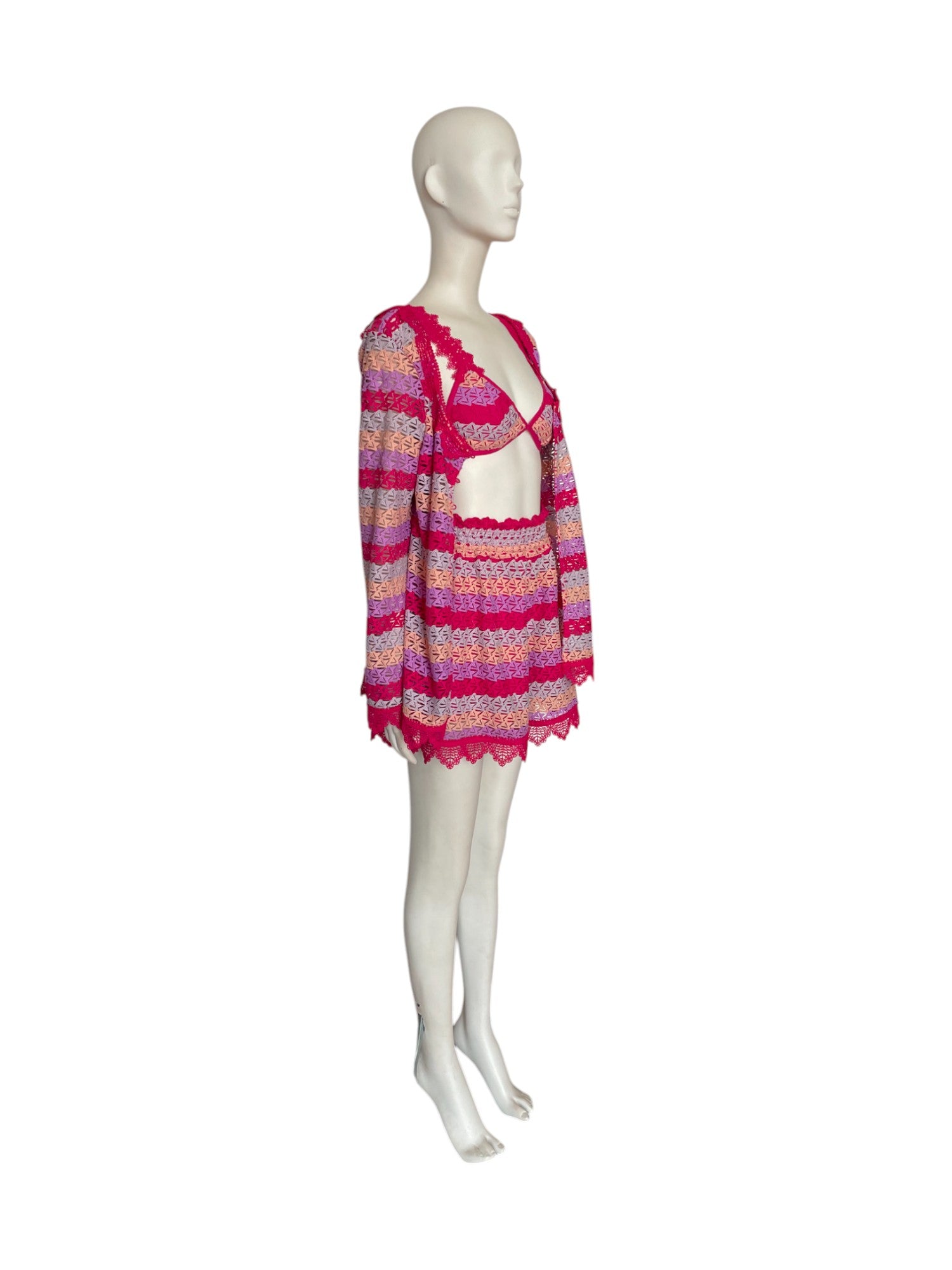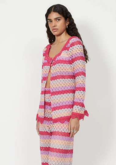 El top Tambora, elaborado en delicado guipure, presenta botones en la parte del pecho que facilitan el ajuste y aportan un detalle elegante. Sus mangas largas ofrecen una silueta sofisticada, ideal para combinar con prendas formales o casuales, brindando versatilidad y estilo con un toque artesanal.
