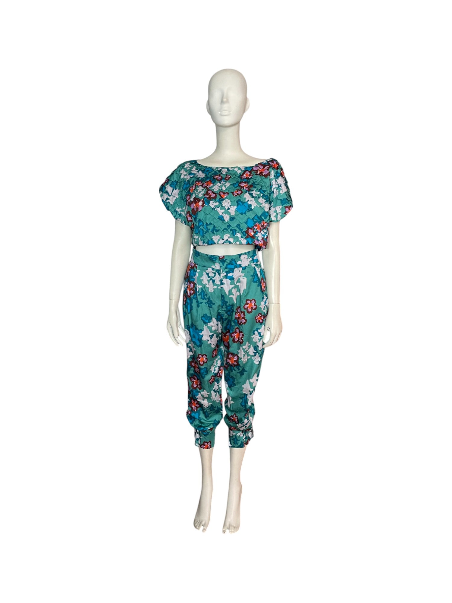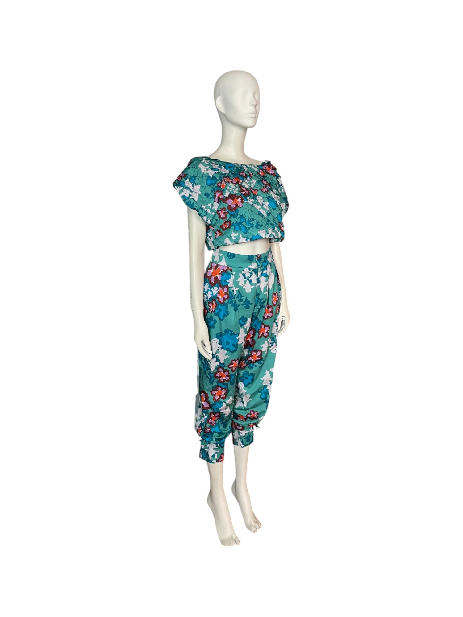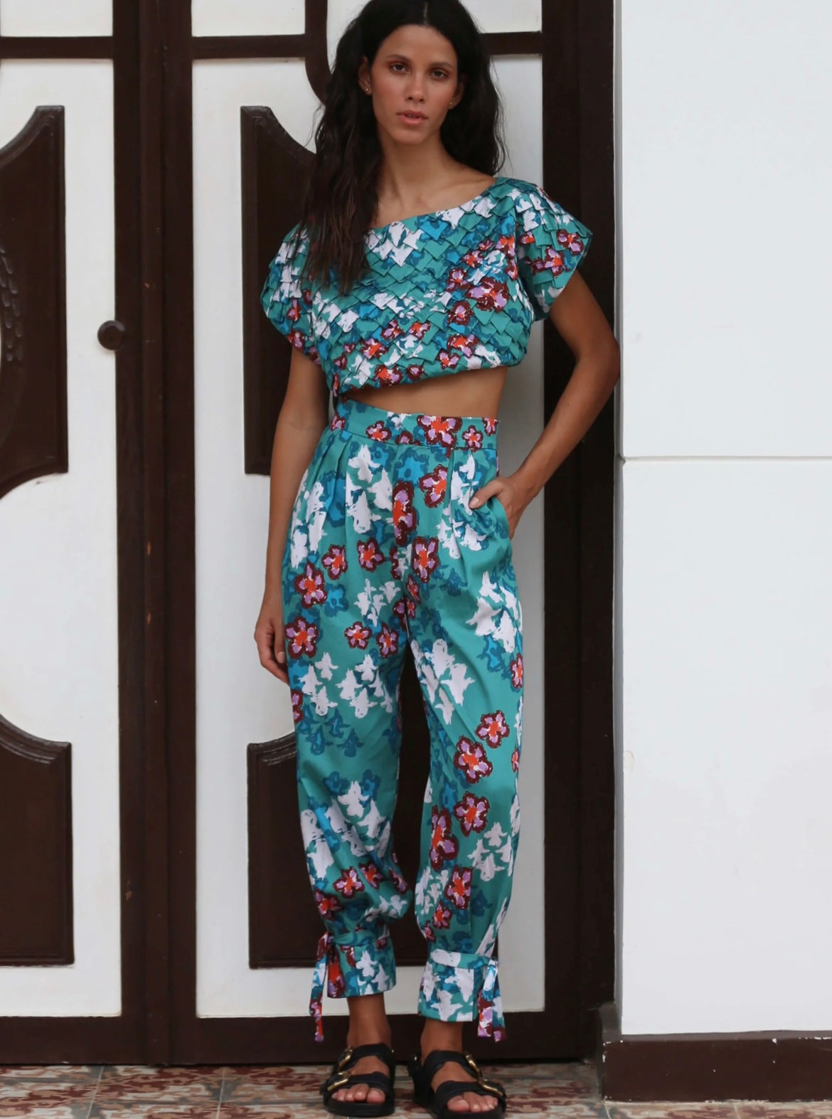 SET DE PANTALON ESTAMPADO EN FLORES (AZUL).
