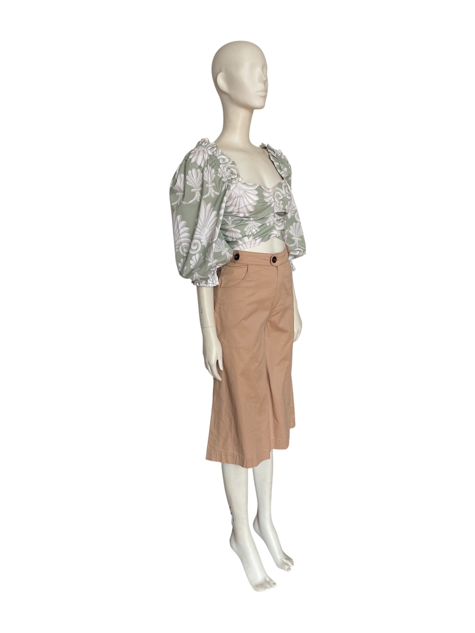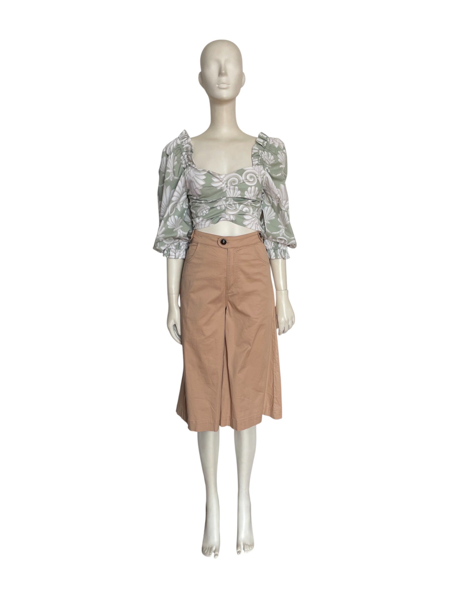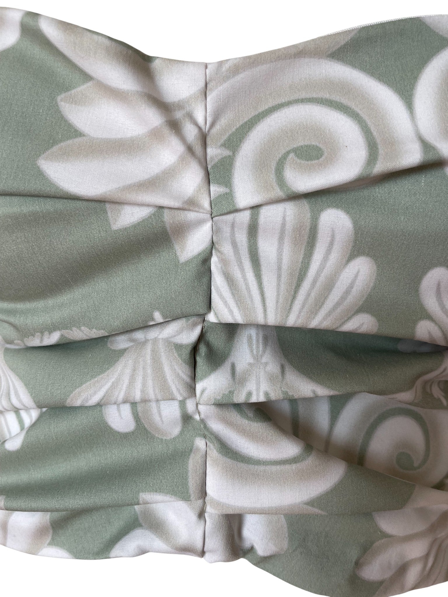 Este top Analu destaca por su elegante diseño de arabescos y detalle fruncido en el busto, que realza la figura con delicadeza. Cuenta con elástico en las mangas y en el respaldo, ofreciendo un ajuste cómodo y flexible que se adapta a tus movimientos.