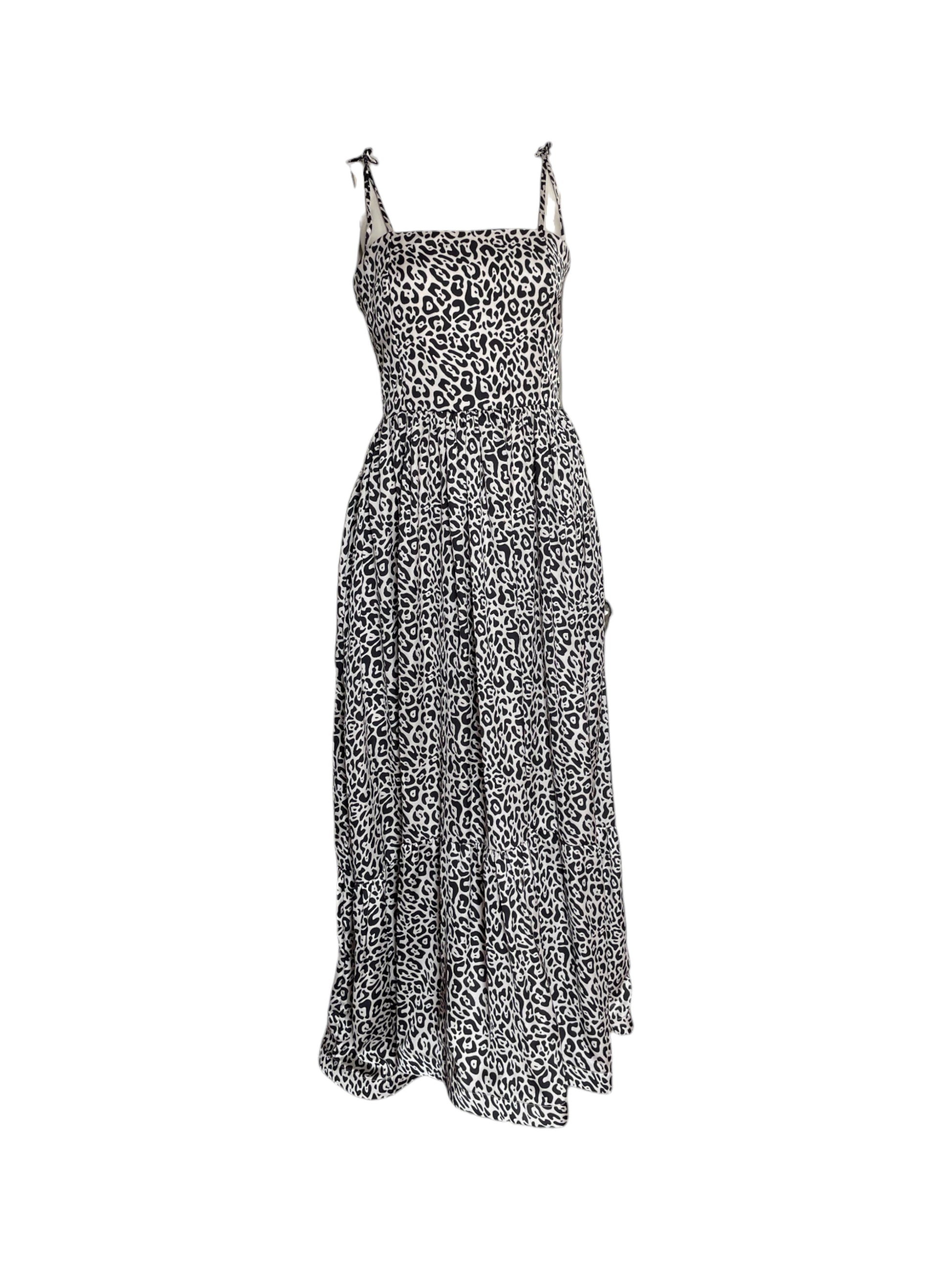 Este vestido maxi con estampado animal print combina estilo y comodidad. Sus tiras ajustables en los hombros permiten un ajuste personalizado, ideal para resaltar tu figura con confianza. Perfecto para cualquier ocasión, aporta un toque audaz y sofisticado a tu guardarropa.