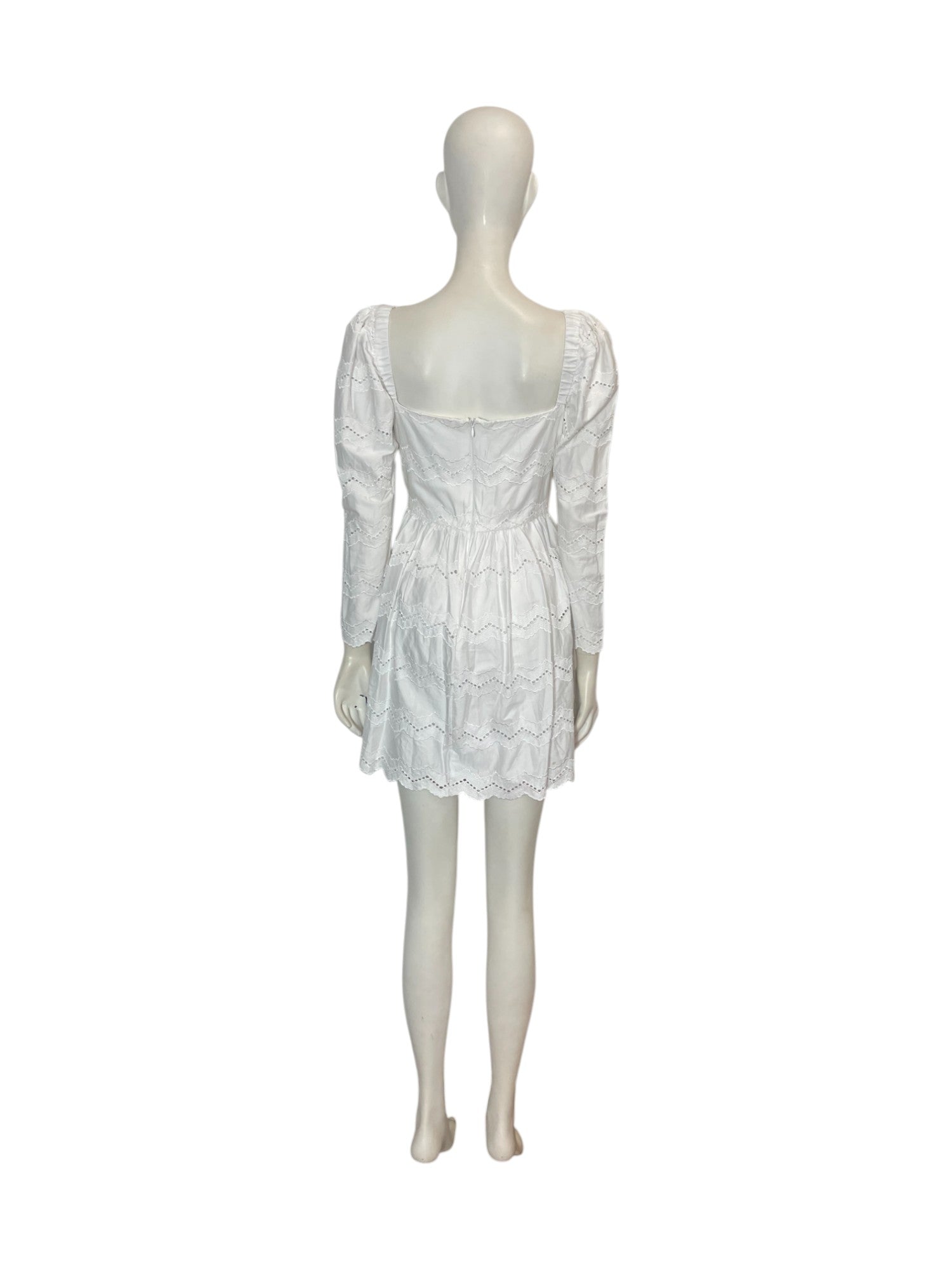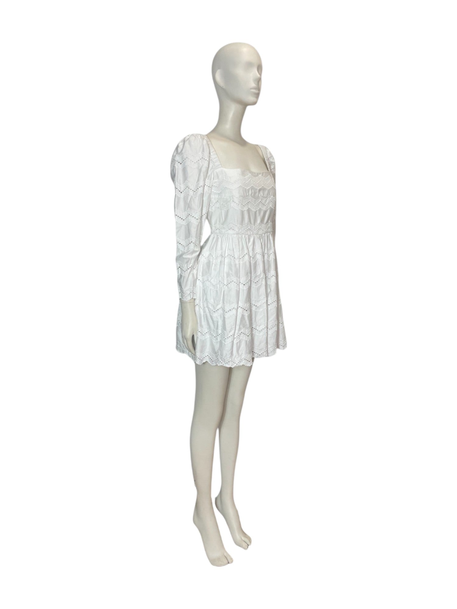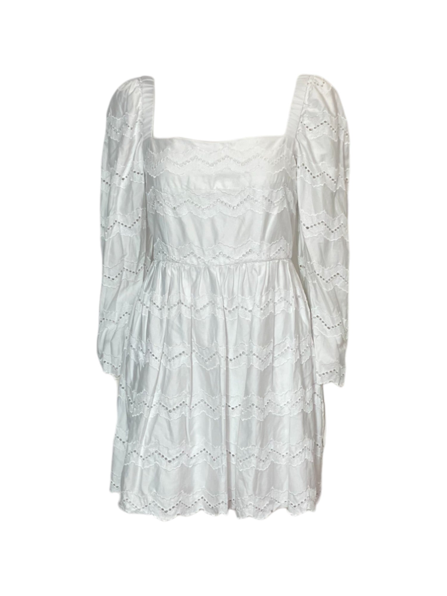 El vestido Florencia blanco es una pieza sofisticada de Atelier que combina un diseño mini con mangas largas para un look elegante y moderno. Sus detalles en ojalillo aportan un acabado delicado y artesanal, realzando la textura y el estilo del vestido.