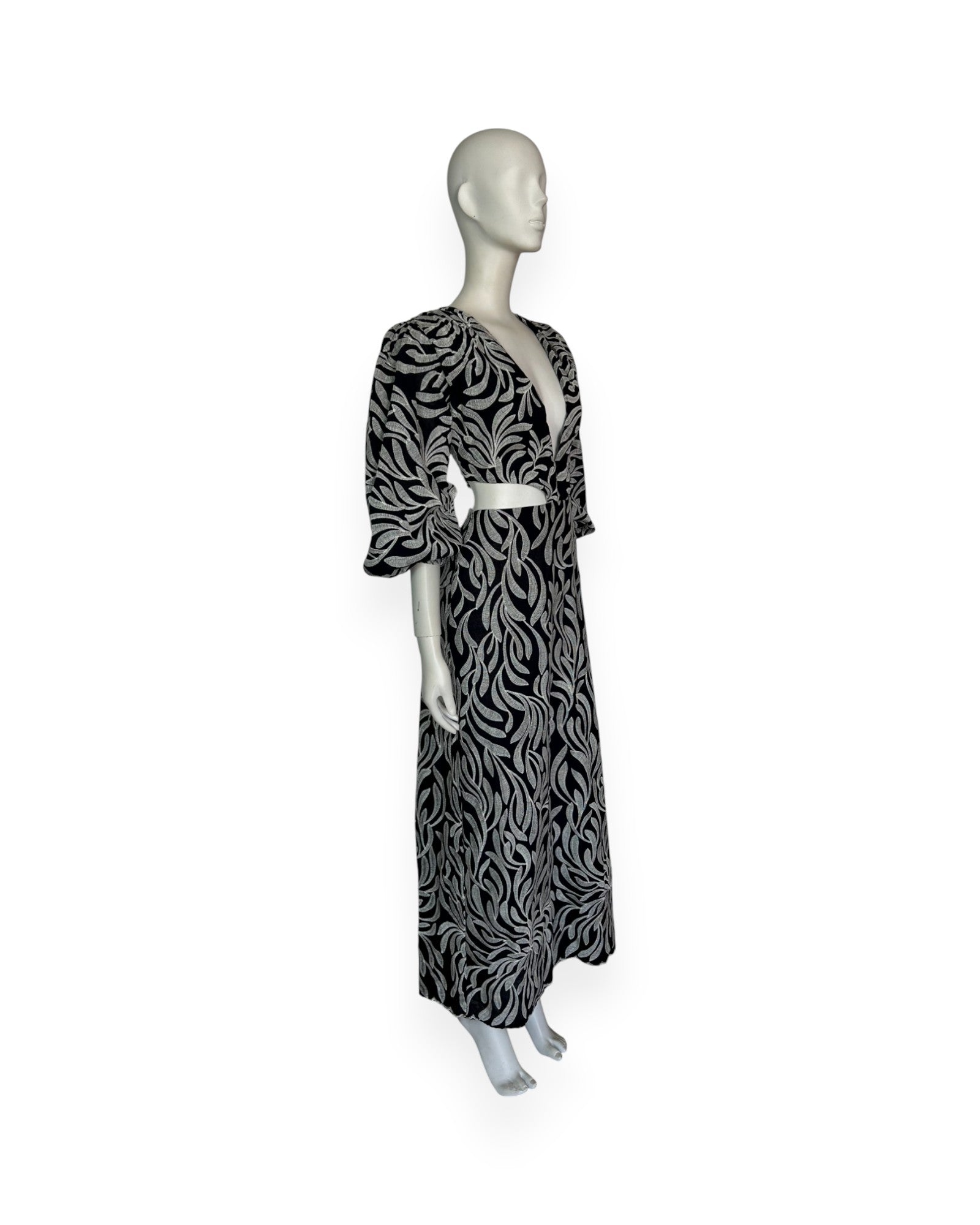 Este vestido maxi con mangas largas ofrece un diseño elegante y sensual gracias a su escote en V y el cut out que se extiende hasta la espalda, resaltando tu figura con delicadeza. Las correderas traseras en el top y la falda permiten un ajuste perfecto para mayor comodidad. Los bordados detallados añaden un toque sofisticado que te hará destacar en cualquier ocasión especial. Ideal para quienes buscan combinar estilo y comodidad en una sola prenda.